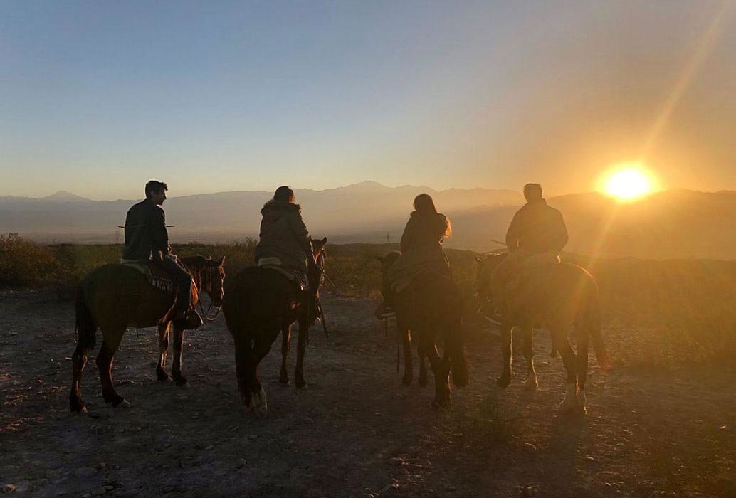 Get ready to saddle up and head out to explore the scenic countryside while taking in the lovely views of the sunset behind the Andes Mountain range.